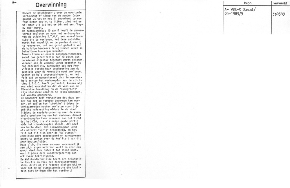 Utrecht - Oudegracht 75 e.v. - bouwplan 1987