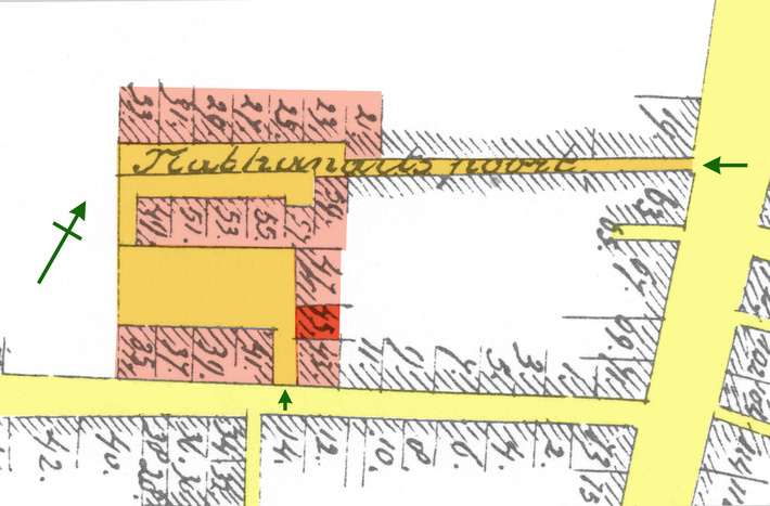 Het slop omvatte in 1897 de later gesloopte panden: