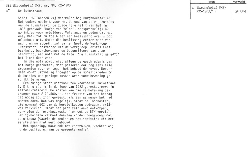 Utrecht - Tuinstraat 6 (gesloopt 1987)