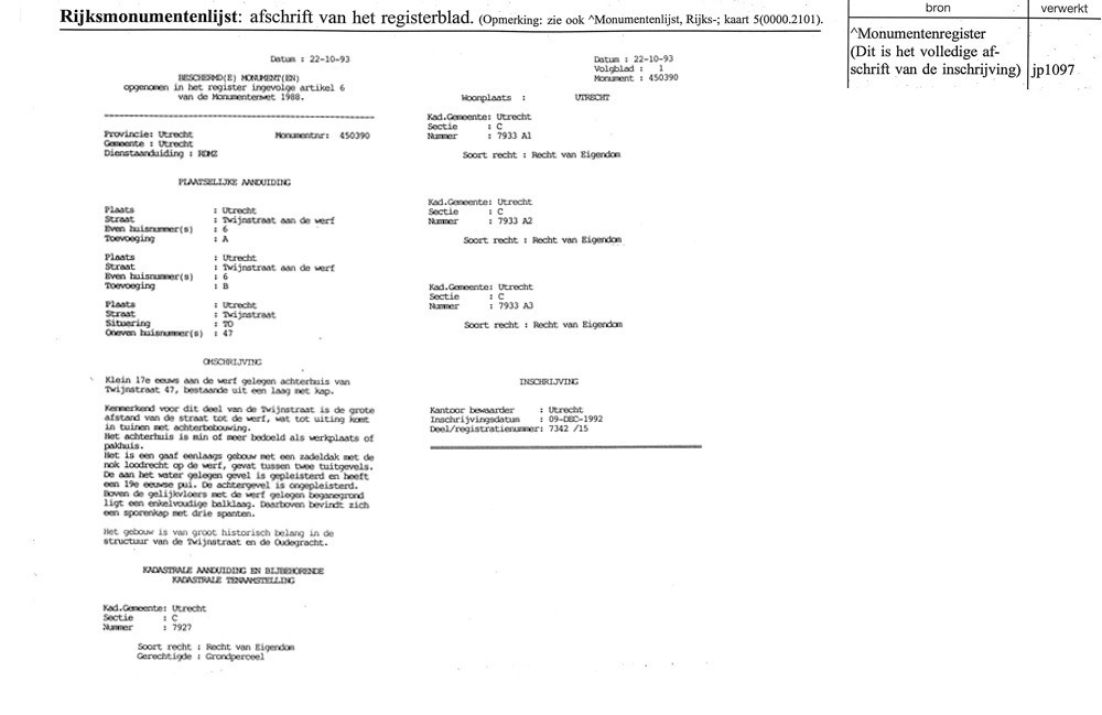 Utrecht - Twijnstraat-aan-de-Werf - pand achter Twijnstraat 47