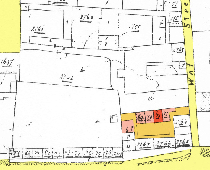 Situatie van het slop in 1832. Zie voor de percelen