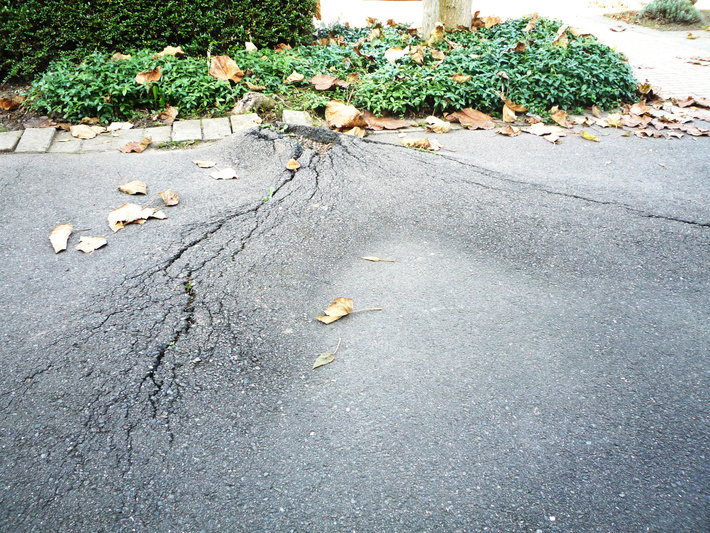 Door wortelopdruk beschadigd asfalt (Kinrooi, B)