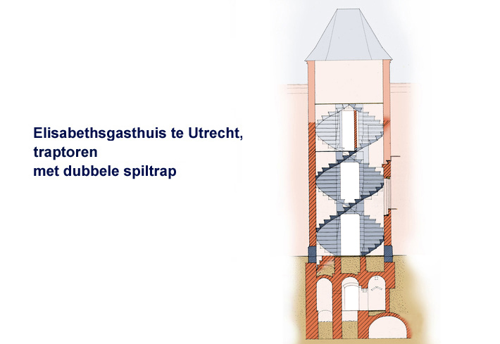 Utrecht - Vredenburg 150 e.o. - Elisabethsgasthuis - traptoren met dubbele spiltrap